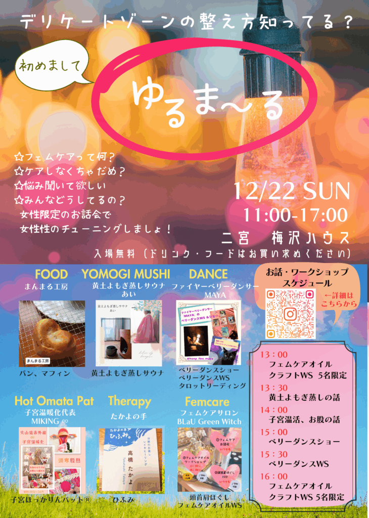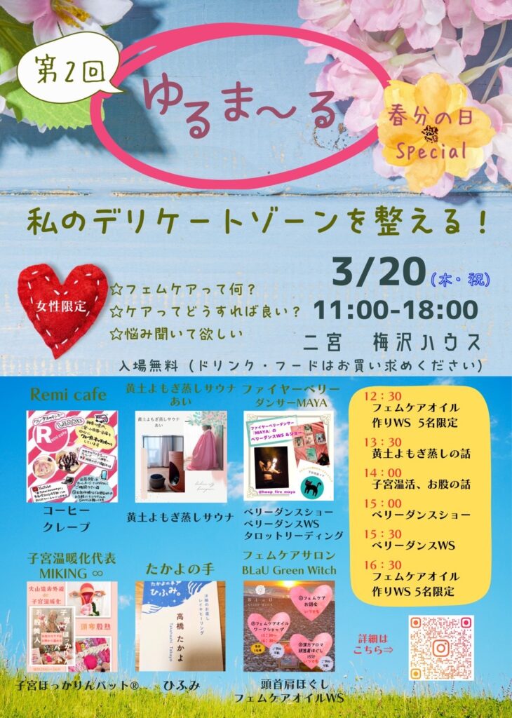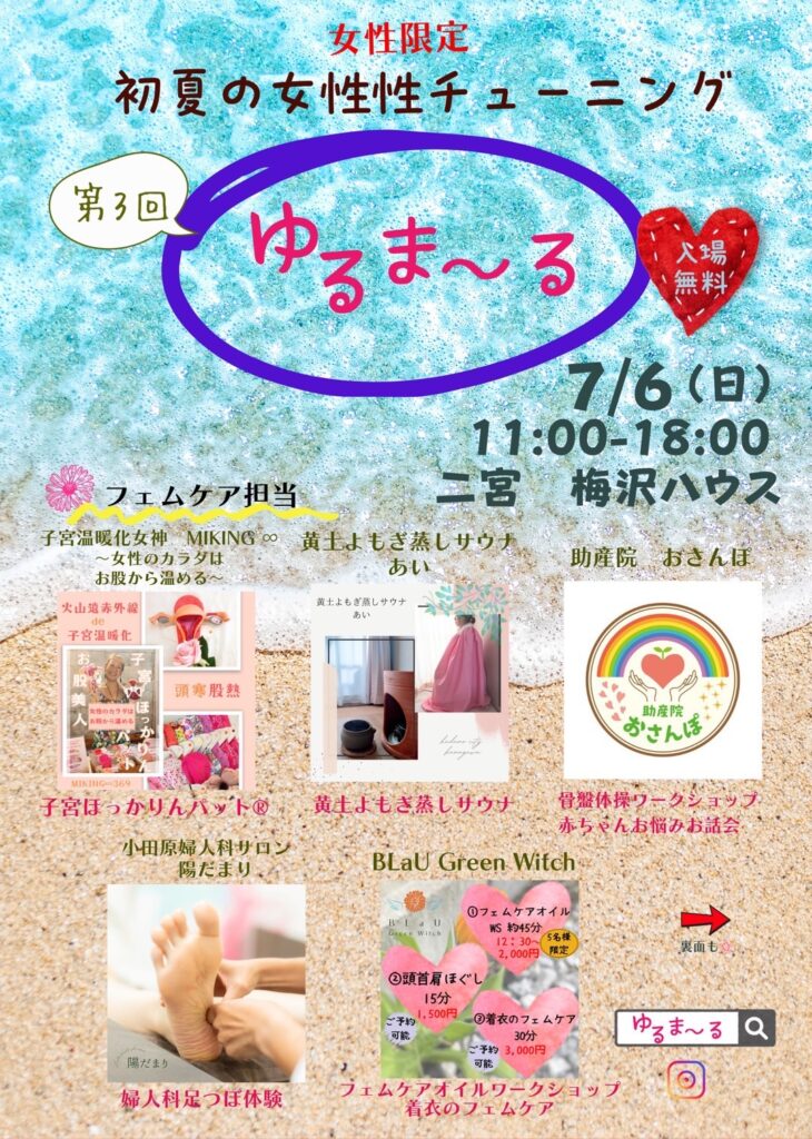 2024年12月から西湘二宮町で心と身体を癒す『ゆるま〜る』というフェムケアイベントを定期的に開催しています。